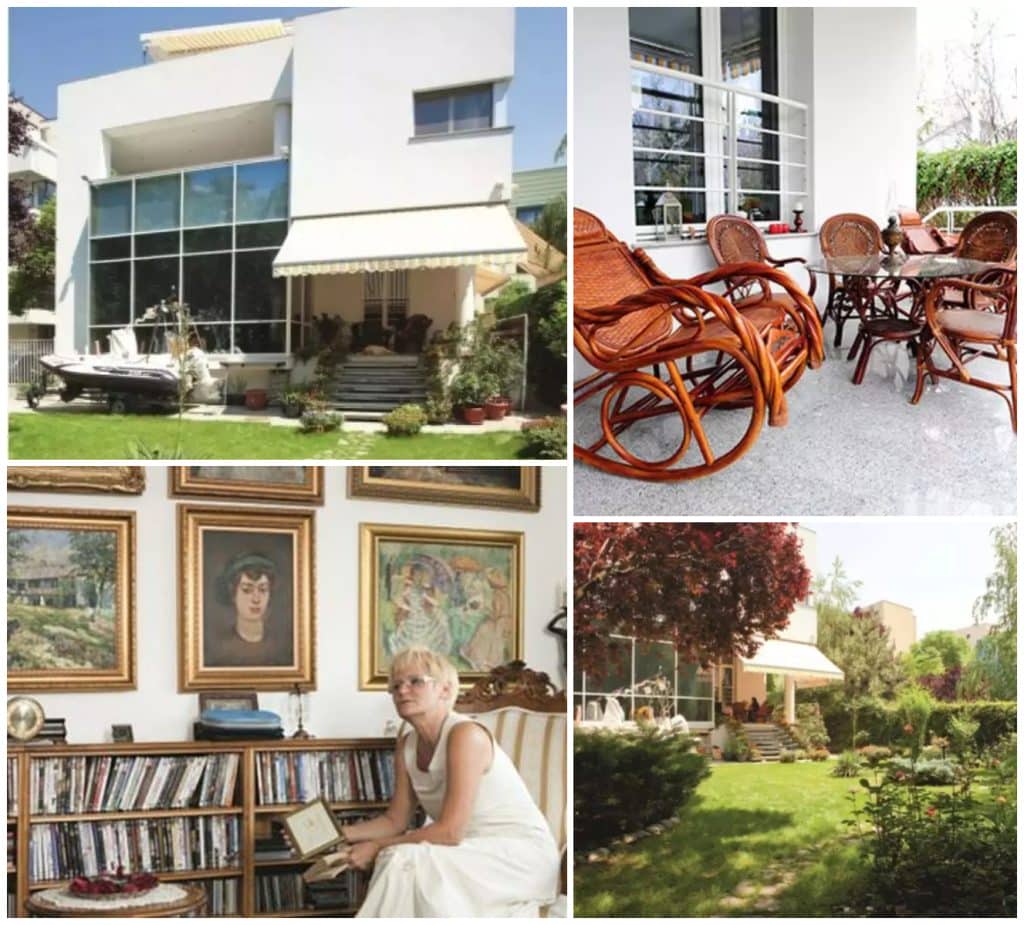 Un imobil generos, pe două niveluri, construită în urmă cu mai bine de 20 de ani, în perioada în care afacerista conducea cu mână de fier o afacere înfloritoare. De construcția impresionantă s-a ocupat soțul său, inginer de profesie, care a refăcut terasamentul (pe locul curții s-a aflat un spațiu de depozitat deșeuri, chiar în vecinătatea Parcului Herăstrău) și a dotat curtea vilei cu sisteme complexe, amintim încălzirea asfaltului din afara casei și un sistem de securitate complex.