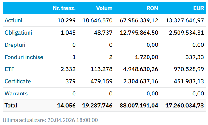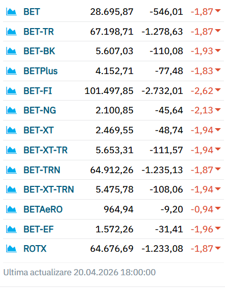 Bursa de Valori București (BVB) scade puternic luni, 20 aprilie, pe fondul unei previzionate crize politice. Nici situația regională sau globală nu este prea bună în acest început de săptămână, în contextul în care încă nu este clar ce se întâmplă în Golful Persic.